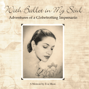 Eva Maze: That I was never afraid of overcoming obstacles or challenges – even when they seemed overwhelming – or venturing into new territory. That I was able to develop a vision with my business, International Artists Productions, that could entertain, enlighten and bring enjoyment to audiences around the world –especially in Germany, where I worked primarily. That I was successful at introducing to discerning European audiences, an eclectic variety of high quality companies and artists from the world of the performing arts and genres such as ballet, contemporary dance, folk dance, Broadway musicals, gospel, classical theater, modern drama, Japanese Kabuki, flamenco, classical music, orchestras, instrumentalists, vocal groups, opera, mime and cabaret – and that they were almost always welcomed with enthusiasm.