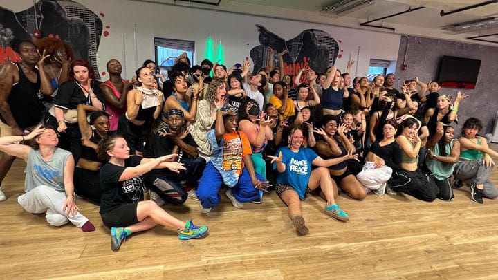 Pulling from their Afro-Caribbean heritage, adolescent African dance training and years living in South Africa, Kumari’s, Frankie Douglas, choreography is heavily influenced by dances like Dancehall and Soca, alongside traditional West or South African movement, infused with Waacking. Some people think “Afro-Waack” is new, but it’s not. It’s been here since 2008. Kumari’s version of it being shared under a different name. This Frankie Douglas style fusion seamlessly integrates the rhythmic grounded grooves of these Black cultural styles into the lower body, while the upper body retains the sharp, intense and very queer arm movements characteristic of Waacking. If you’ve ever taken their class, the poly-rhythms are insane.