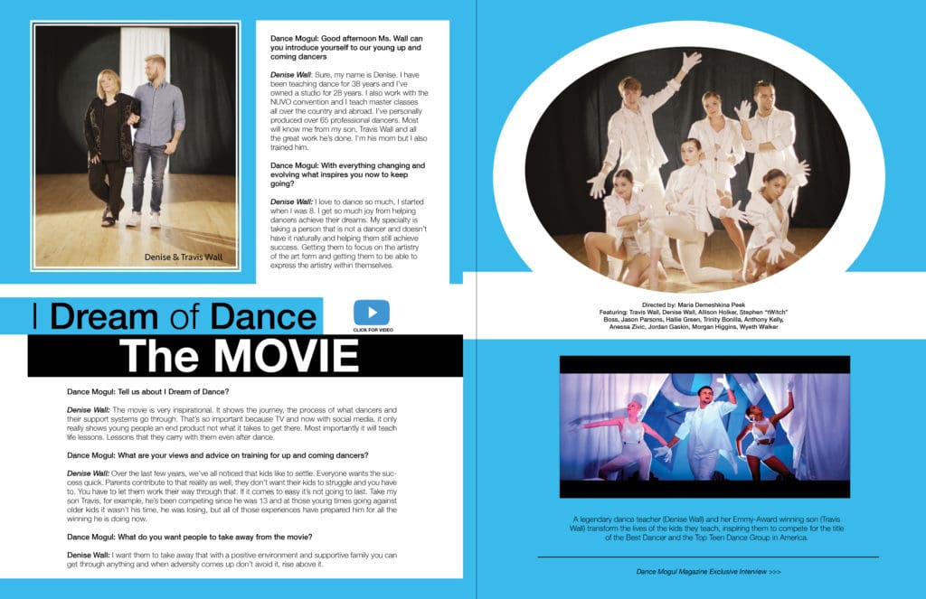 Dance Mogul: What are your views and advice on training for up and coming dancers?Denise Wall: Over the last few years, we’ve all noticed that kids like to settle. Everyone wants success quick. Parents contribute to that reality as well, they don’t want their kids to struggle and you have to. You have to let them work their way through that. If it comes to easy it’s not going to last. Take my son Travis, for example, he’s been competing since he was 13 and at those young times going against older kids it wasn’t his time, he was losing, but all of those experiences have prepared him for all the winning he is doing now.